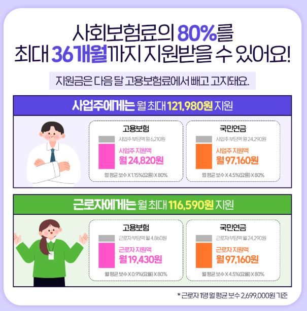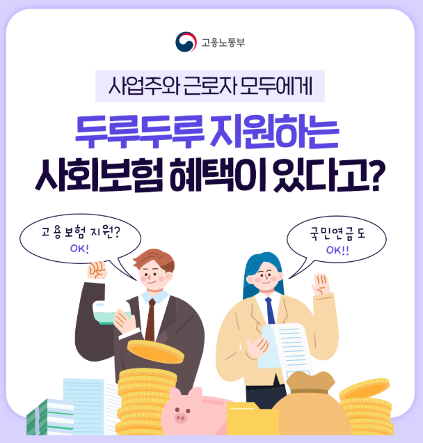 고용보험과 국민연금에 모두 가입한 경우 두 가지 모두에 대한 지원을 받게 됩니다.