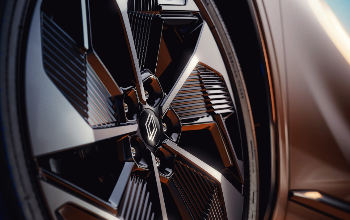 - 전면에는 르노 로고가 중앙에 위치하며, 차량 색상과 자연스럽게 어우러지는 다이아몬드 패턴 그릴이 특징입니다.