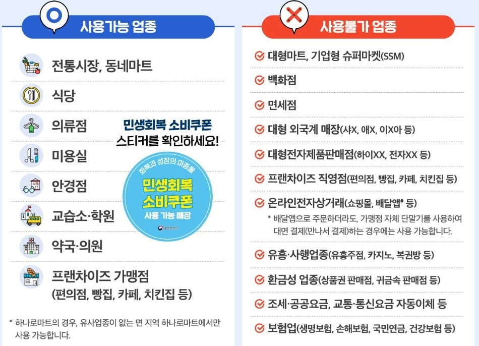 중요한 점은 지역에 따라 사용 장소가 다를 수 있다는 점입니다. 따라서 소비자 쿠폰을 사용하기 전에 매장에서 민생 회복을 위해 사용할 수 있는지 미리 확인하는 것이 좋습니다.