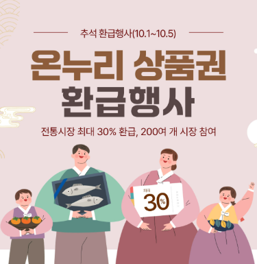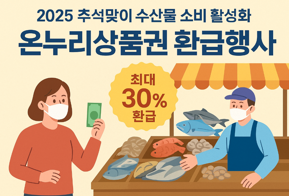 - 내용: 국내산 수산물 구매 시 최대 30% 온누리 상품권 환불 (1인당 최대 20,000원)