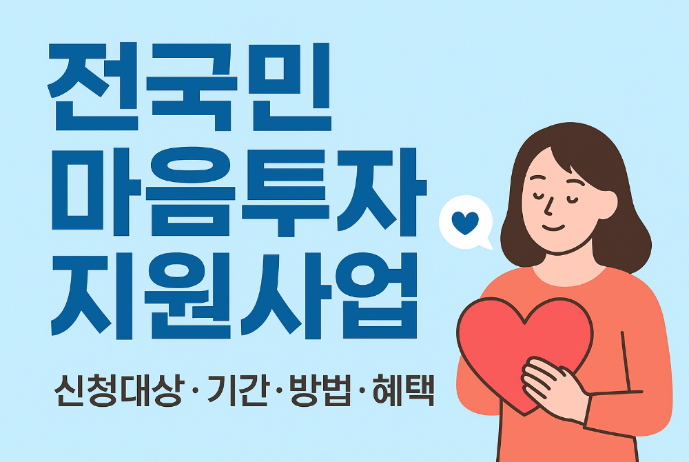 오늘은 전국민 마음투자 지원사업 신청자격, 방법, 기간 및 주요 내용에 대해 알아보겠습니다.